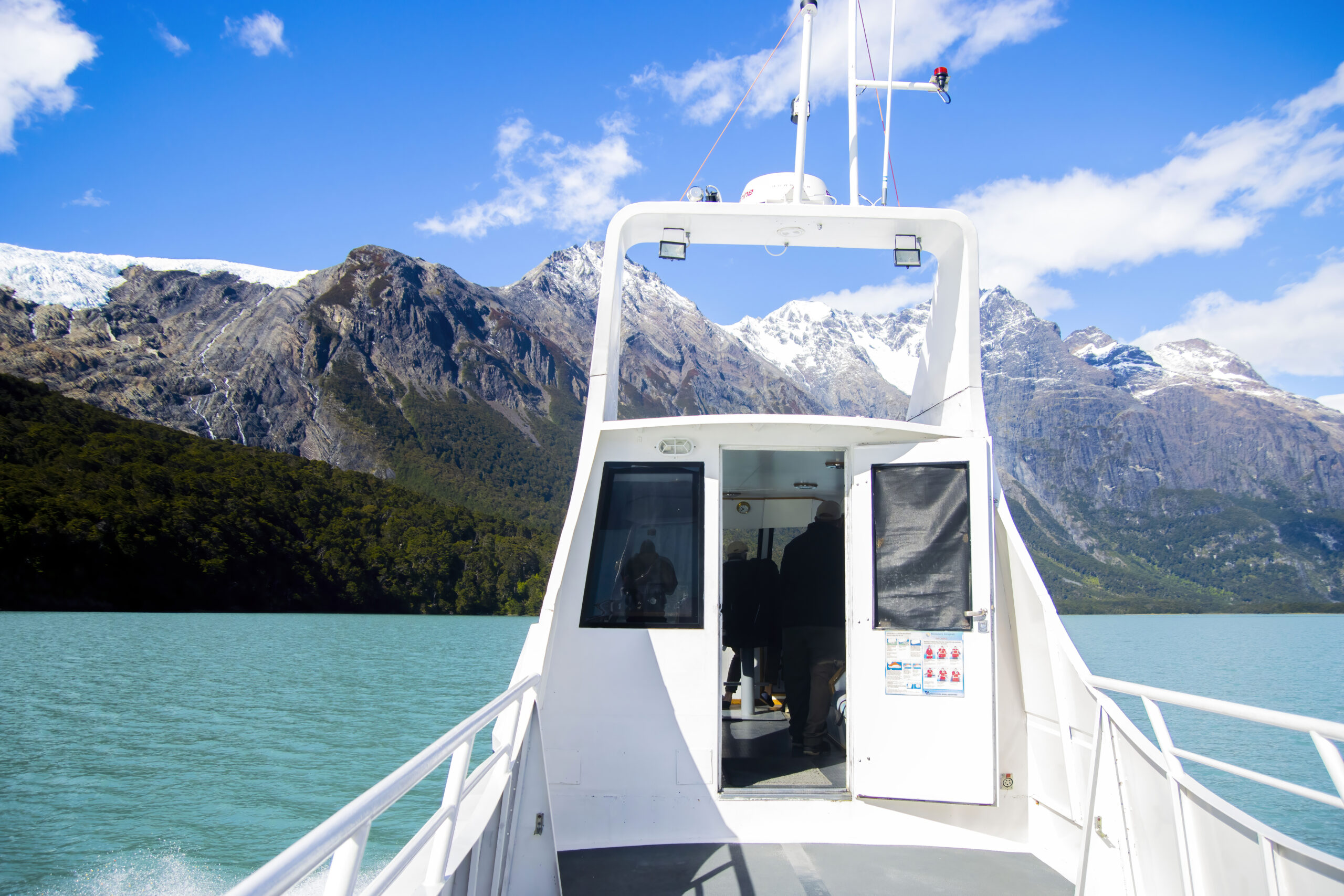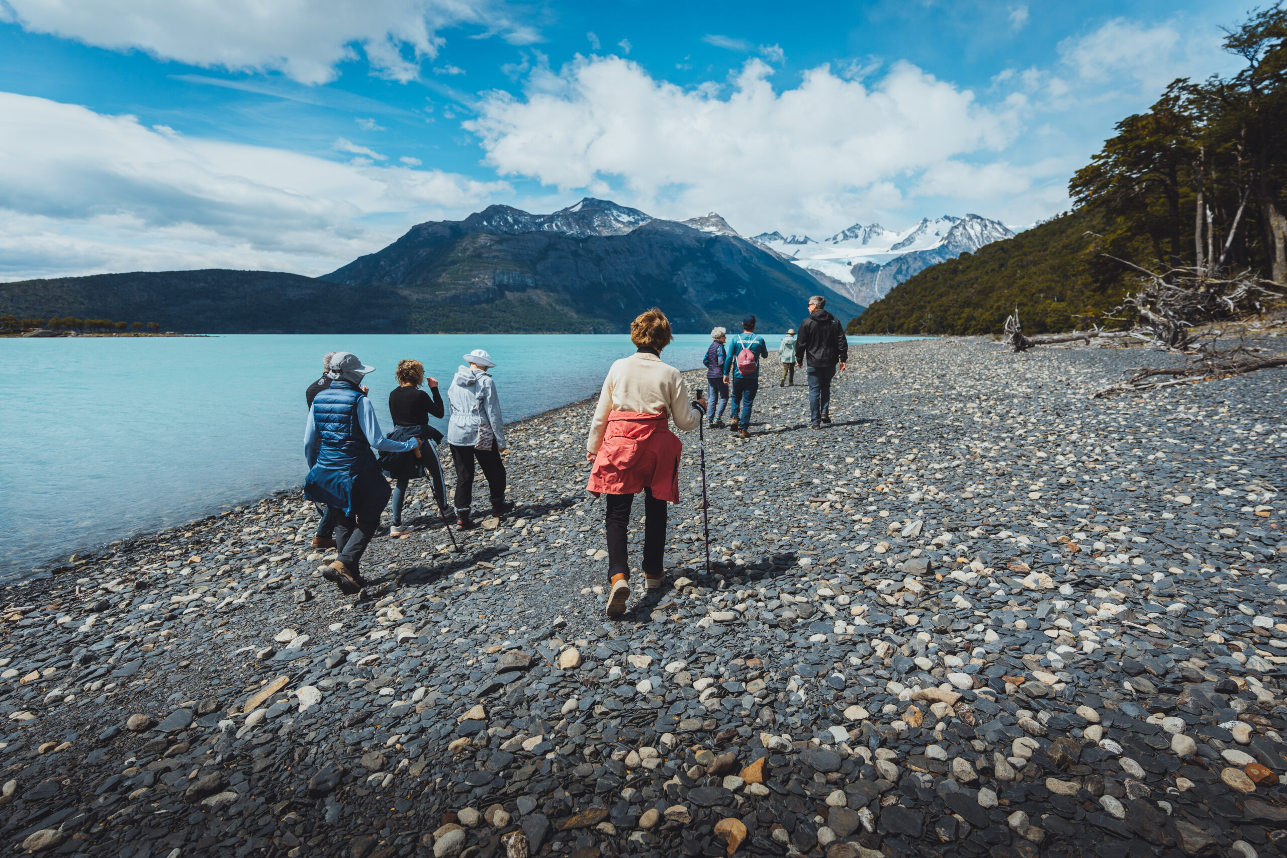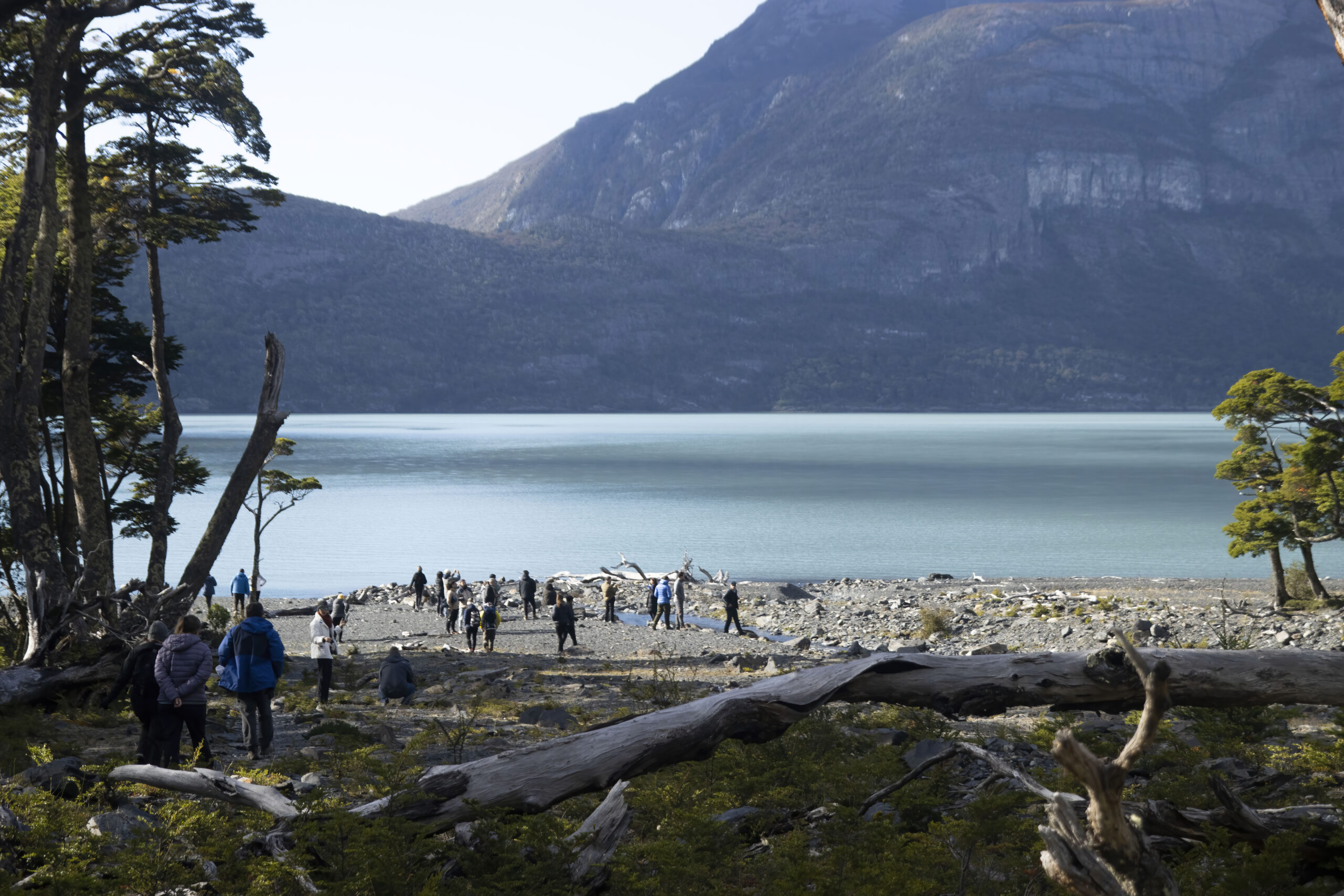 The first landing is at Bahía Toro, where a guided interpretive walk of approximately 700 meters takes place. The trail is mostly flat, with stones and exposed roots, and leads through the Andean Patagonian forest to a waterfall. From the lakeshore, it is also possible to observe hanging glaciers on Cerro Mayo and Cerro Negro.