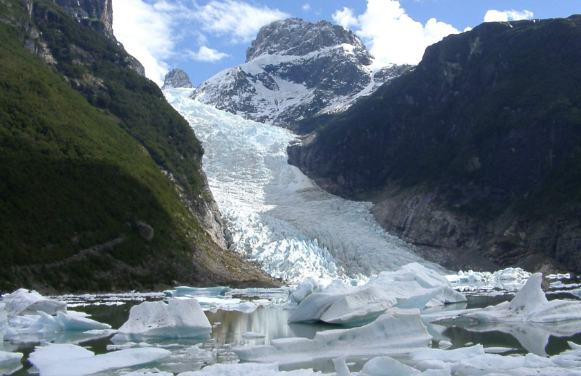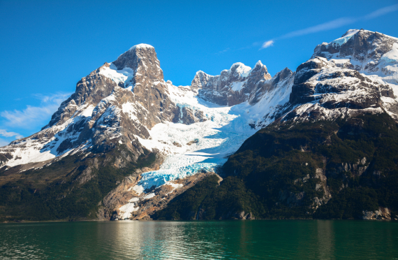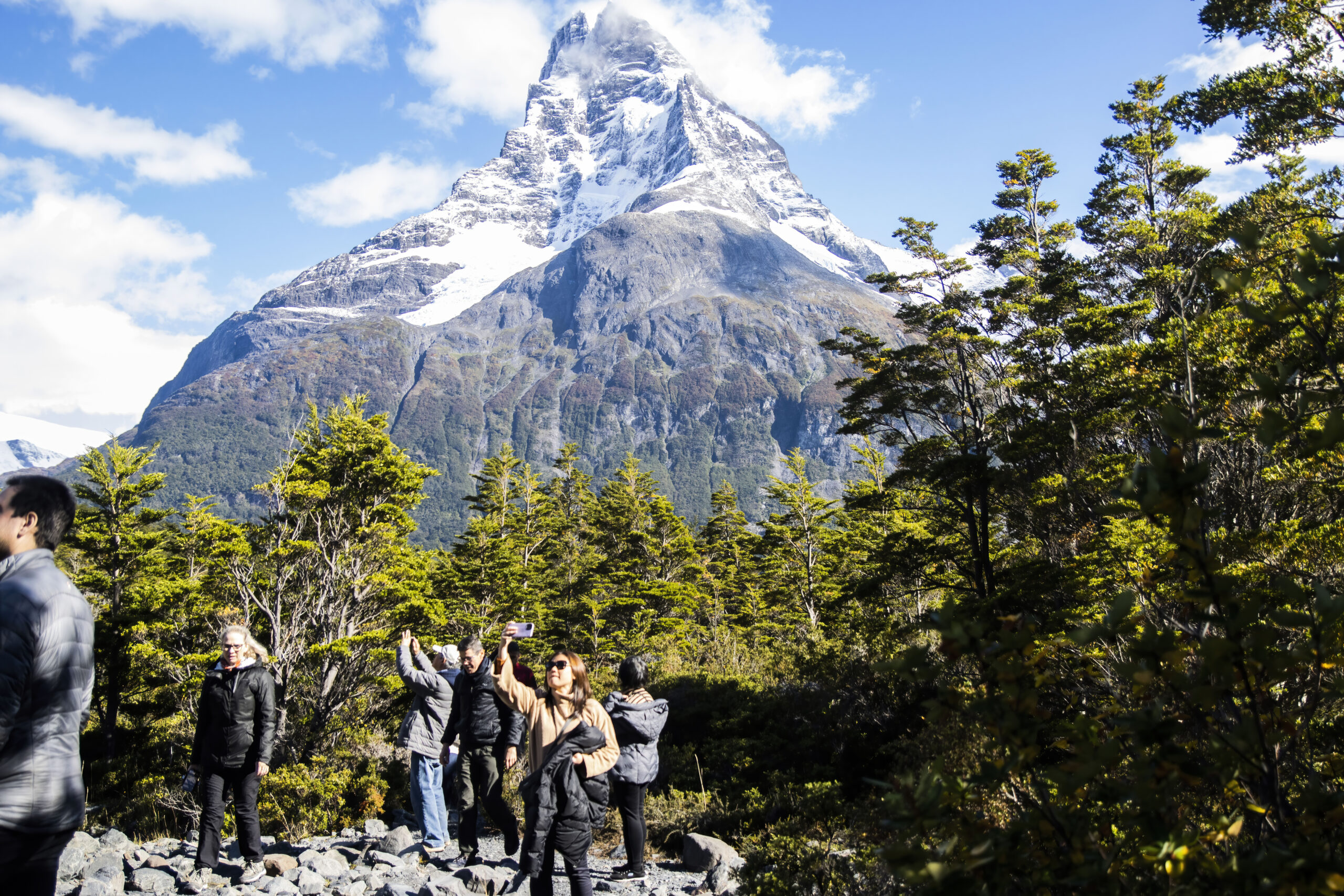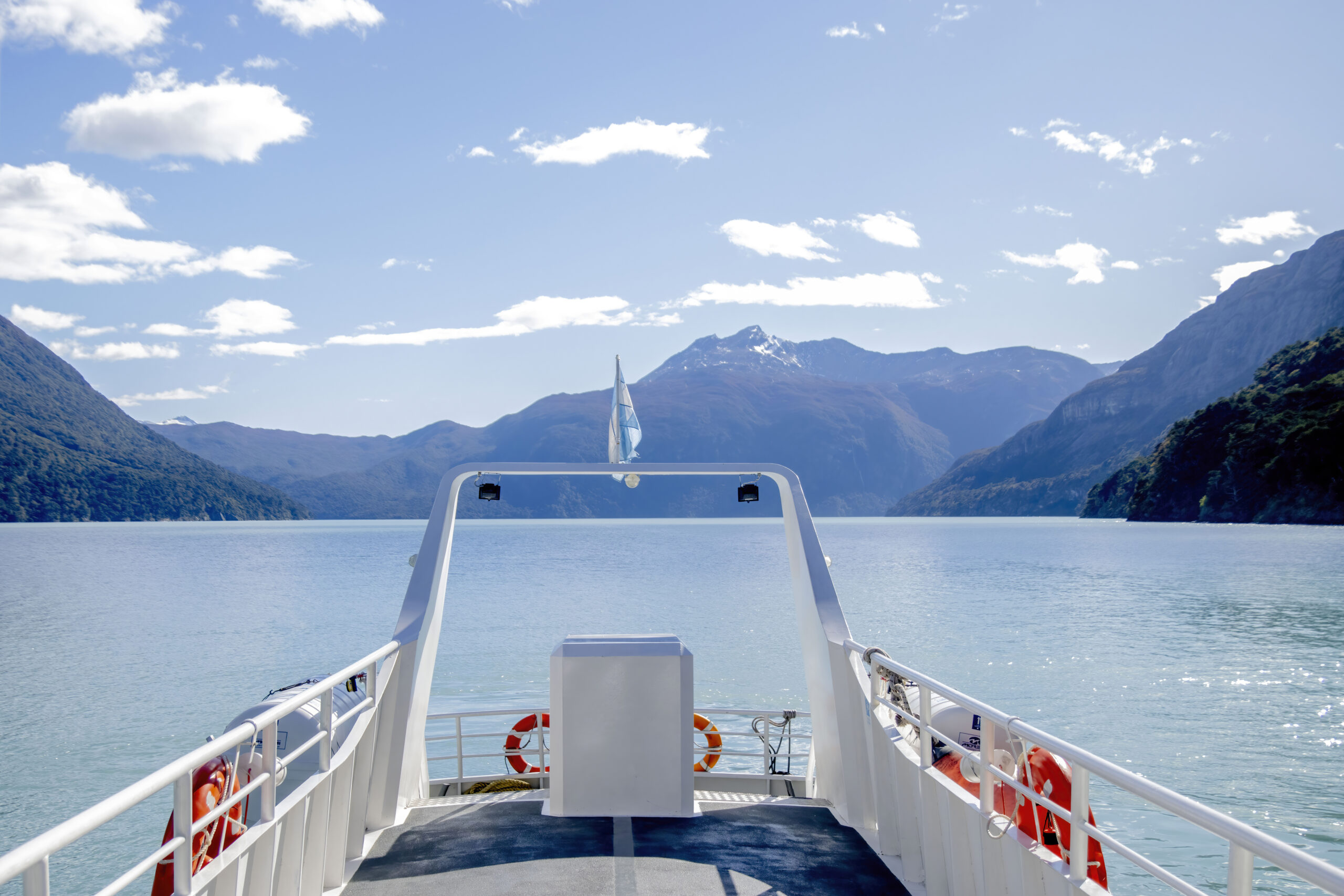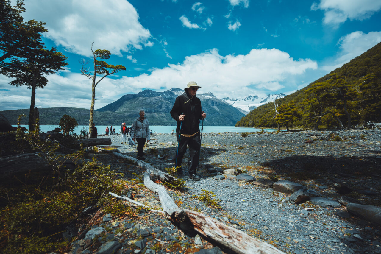 The first landing is at Bahía Toro, where a guided interpretive walk of approximately 700 meters takes place. The trail is mostly flat, with stones and exposed roots, and leads through the Andean Patagonian forest to a waterfall. From the lakeshore, it is also possible to observe hanging glaciers on Cerro Mayo and Cerro Negro.