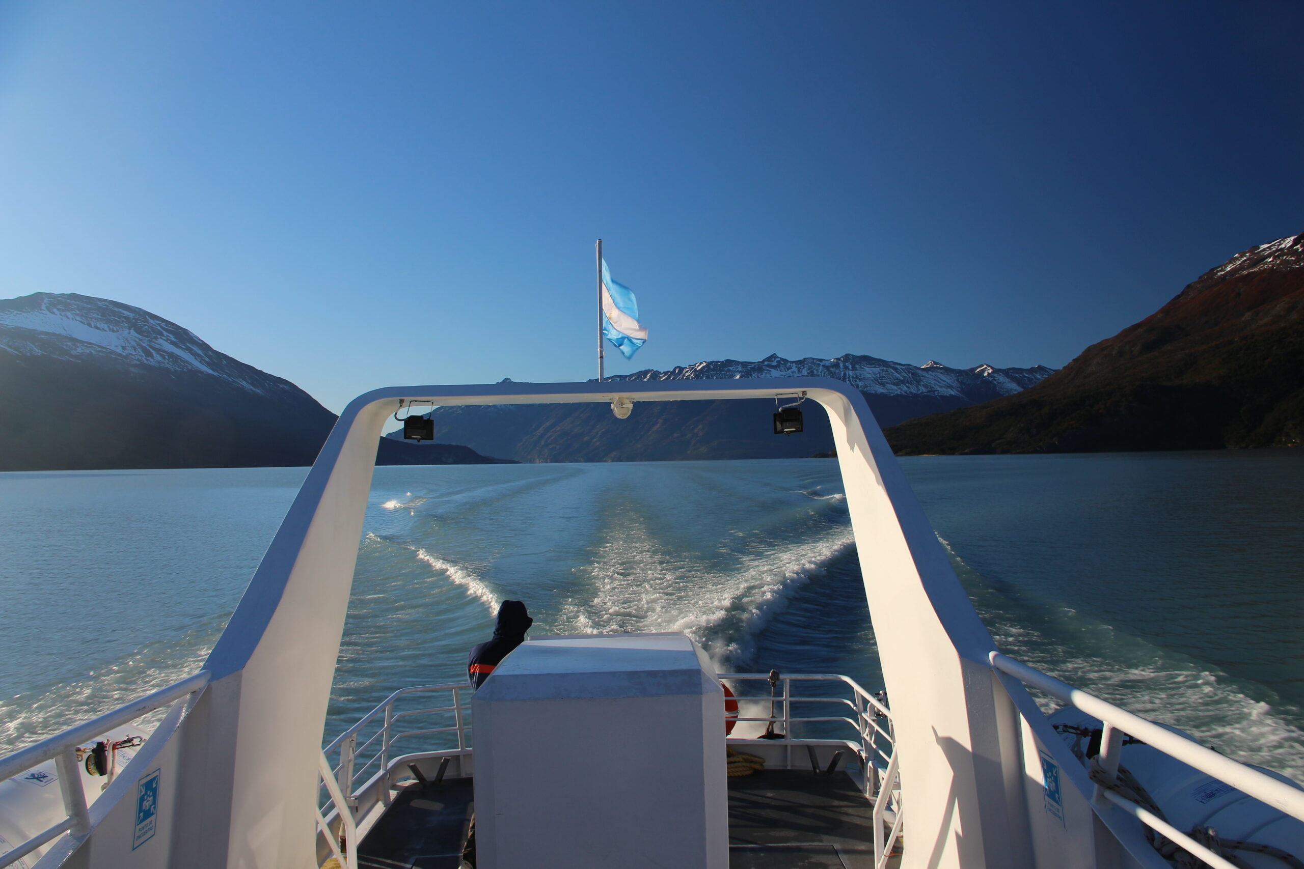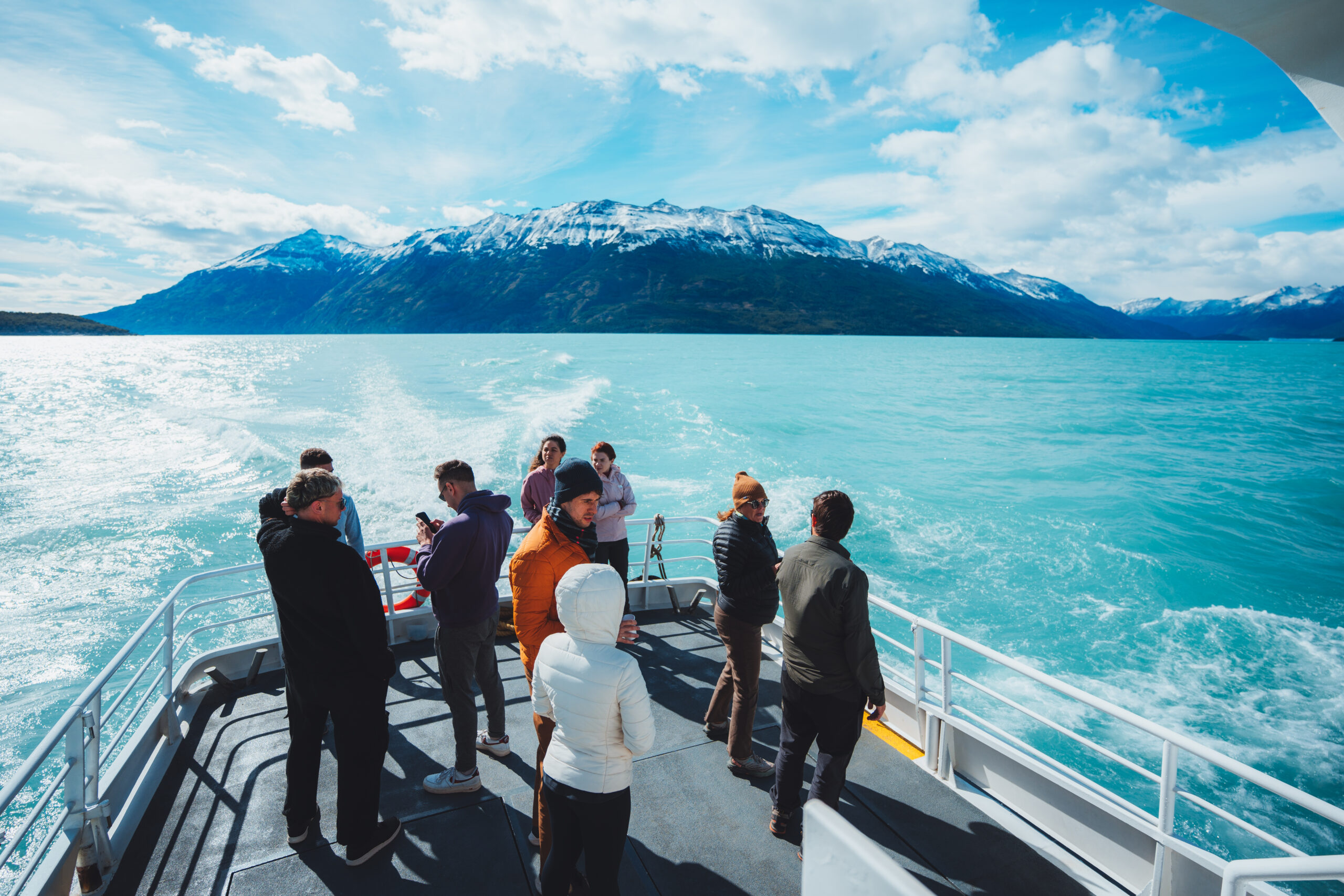 The experience begins at Puerto Punta Bandera, where the boat Cruz del Sur departs and immediately enters the Canal de los Témpanos on Lake Argentino. Shortly after departure, the first scenic stop takes place in front of Punta Bandera, a historic site where Francisco Pascasio Moreno named Lake Argentino in 1877. This stop is made without disembarking, accompanied by an onboard explanation from the guide.