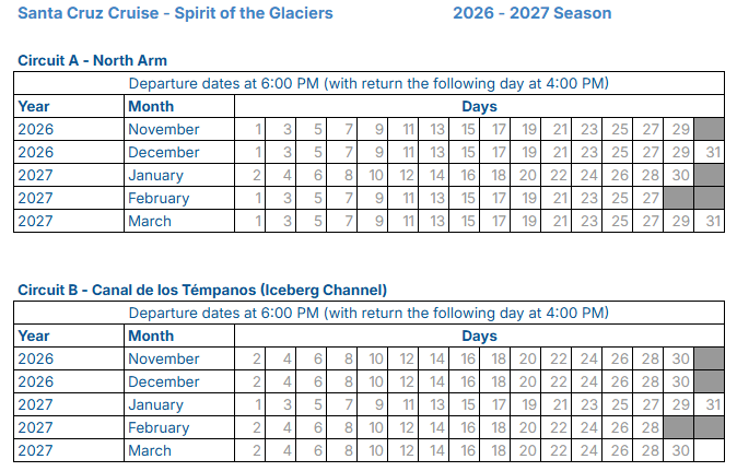 The Spirit of the Glacier Cruise is an expedition-style journey through Lake Argentino and Los Glaciares National Park, combining scenic navigation, glacier viewing, and guided landings. All passengers follow the same route and activities, with the option to choose cabin category and number of nights on board.