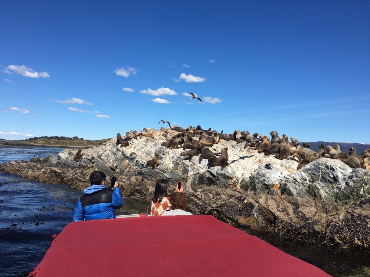 Navigation to Isla Martillo: Board a boat for a short but unforgettable ride across the Beagle Channel, heading toward Isla Martillo.