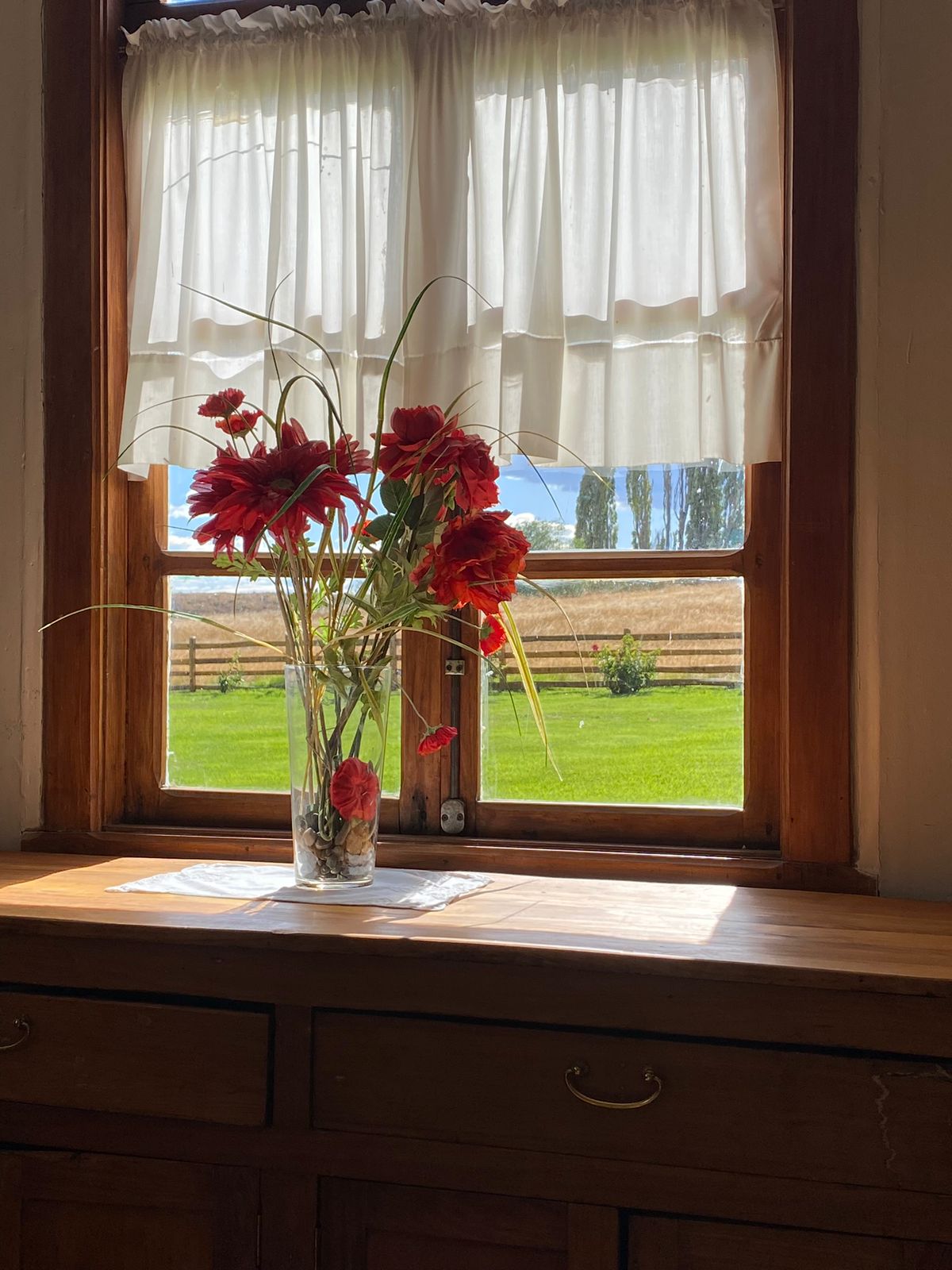 After settling into my room — simple, comfortable, with open views of the landscape — I went for a walk around the property. The silence was impressive. The only sounds were the wind, the occasional movement of horses in the corrals, and far away the bleating of sheep.